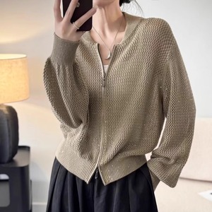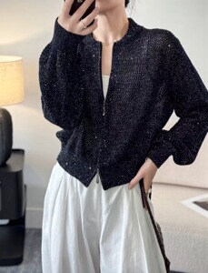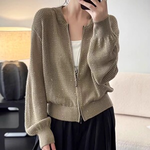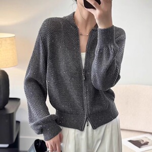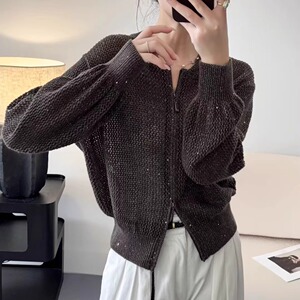 欧货设计款羊毛衫女2025秋冬新款拉链夹克开衫亮丝宽松毛衣针织衫