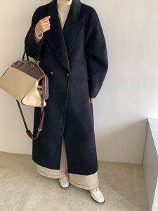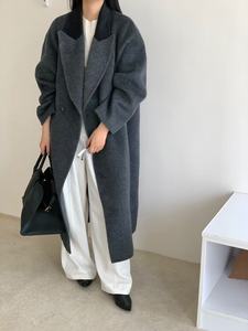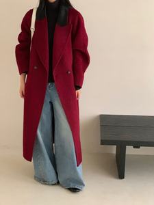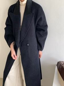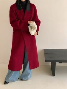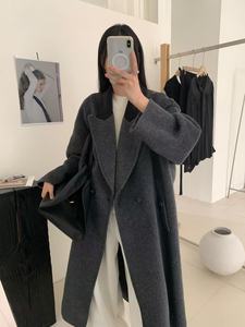 秋冬新款双面羊绒大衣女2025韩版长款拼色领修身大衣女双面羊绒