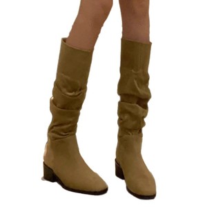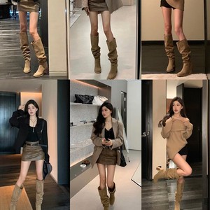 欧美内增高堆堆靴褶皱高跟骑士靴西部牛仔长筒靴女2025年夏季靴子