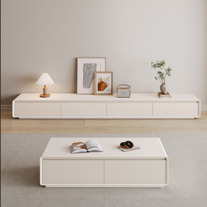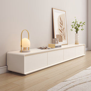 烤漆奶油风实木电视柜钢琴烤漆新款现代简约家用落地储物电视柜