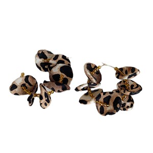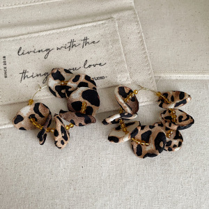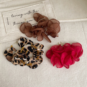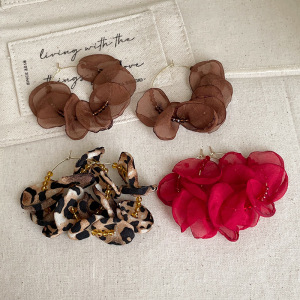 文艺复古网纱豹纹花朵耳圈女设计感小众独特个性时尚潮流耳环耳饰