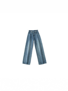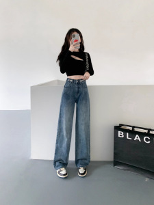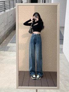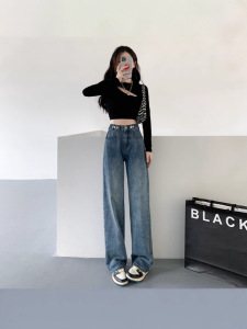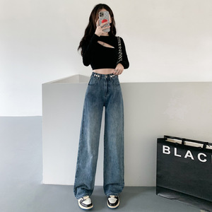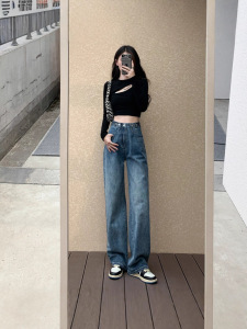 哥家商场同款女装2025秋季时尚高腰窄版阔腿裤宽松显瘦牛仔裤子