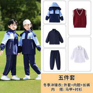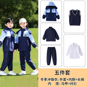 小学生校服秋冬冲锋衣套装一年级学院风儿童班服三件套幼儿园园服