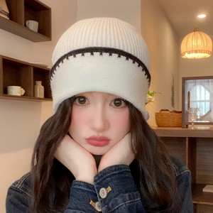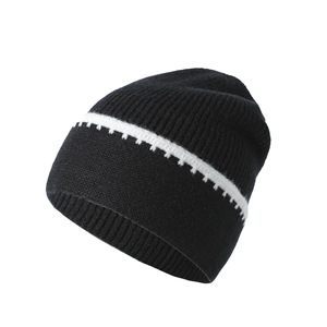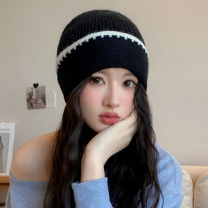 秋冬季网红同款韩版 拼色毛线帽秋冬保暖ins风时尚软糯针织帽黑色