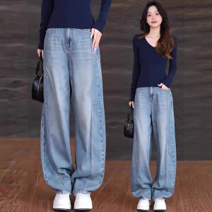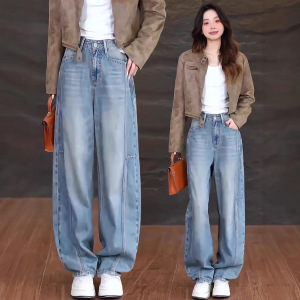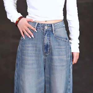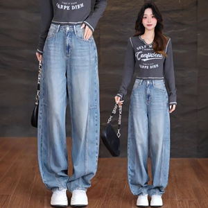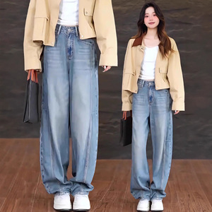 浅色弯刀直筒牛仔裤女春秋季2025年新款高腰宽松阔腿时尚香蕉裤