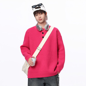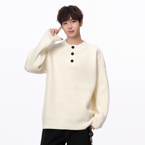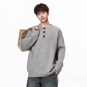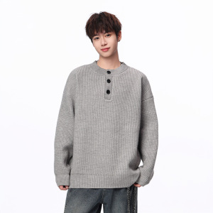 安洋舒适百搭纽扣毛衣针织衫男士2025秋冬新款套头宽松休闲长袖男