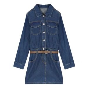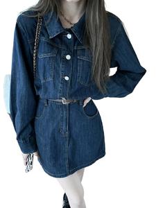 设计感复古翻领牛仔裙女秋季大码胖mm高腰显瘦长袖衬衫连衣裙潮