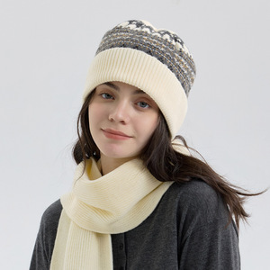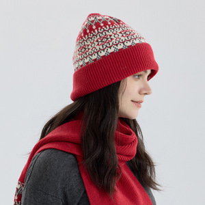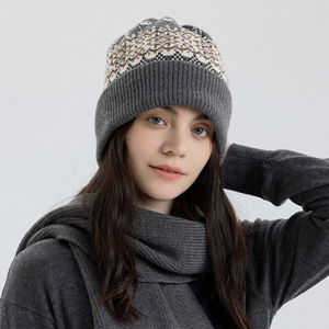 25新款费尔岛提花秋冬针织帽子女情侣简约护耳保暖包头毛线帽男潮