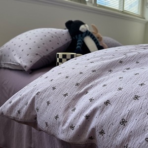 文艺做旧双层纱印花四件套北欧裸睡母婴级长绒棉被套床单三件套