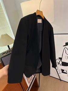 CHao级推荐!老钱风穿搭无领黑色西装外套女早春新款外搭开衫上衣