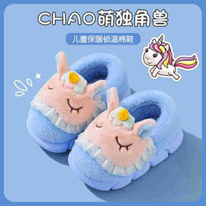 独角兽儿童棉拖鞋女童秋冬季新款室内家居保暖鞋大童幼儿宝宝棉鞋