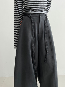 NS 韩系休闲松弛垂感宽松阔腿裤女秋新款配腰带百搭拖地长裤1731