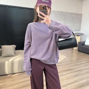 灰紫色做旧砂洗毛圈棉卫衣简约刺绣圆领套头宽松显瘦遮肉休闲上衣
