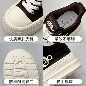 超轻厚底真皮休闲鞋女2025秋新款百搭透气小个子网红爆款高帮板鞋