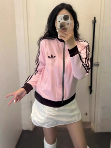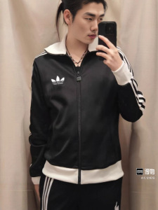 三叶草复古风三条杠运动服立领夹克男女同款刺绣休闲宽松透气外套
