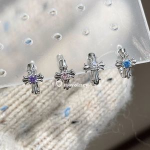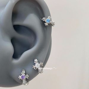 爆闪甜酷独特克罗十字架直针耳环独特百搭耳骨环叠戴个性耳圈耳饰