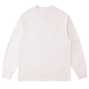 秋季美式高街纯色纯棉重磅240克宽松长袖基础款T恤定制情侣装印字
