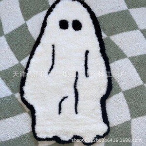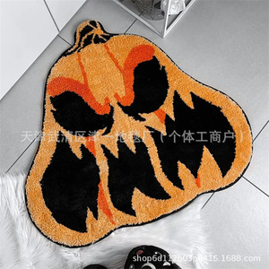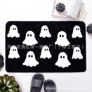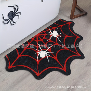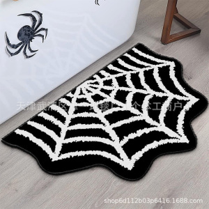 跨境temu万圣节蜘蛛网仿羊绒地垫浴室吸水脚垫家门口入户蹭脚垫