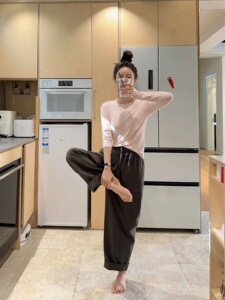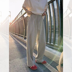 秋季新款280g通勤百搭日系简约爽滑棉高腰休闲裤运动弹力卫裤
