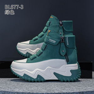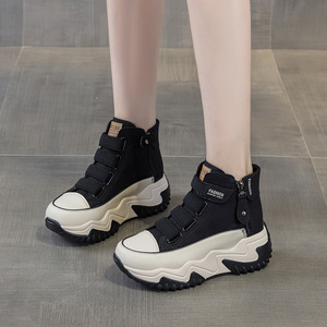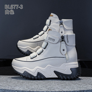 真皮高帮老爹鞋女2025秋新款厚底百搭魔术贴透气网红双拉链休闲鞋