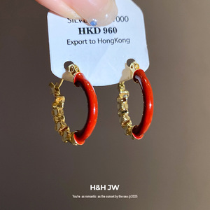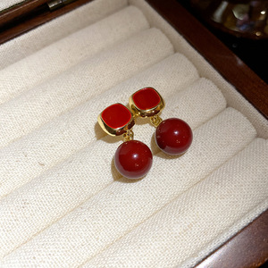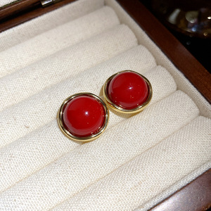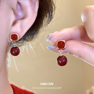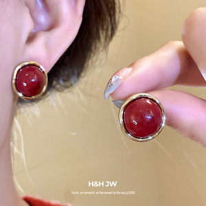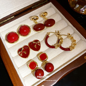 银针滴油爱心时尚简约耳环安可拉红色复古百搭耳钉轻奢高级感耳饰
