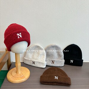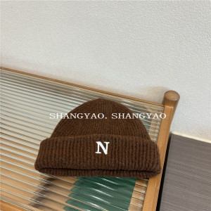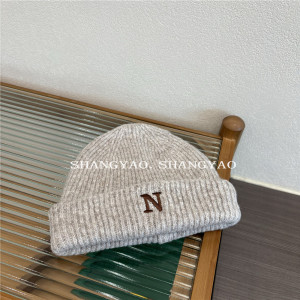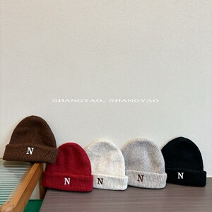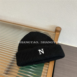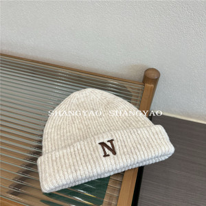 ins韩版刺绣字母N儿童针织帽子简约男女童户外保暖毛线帽时尚冷帽
