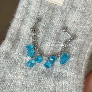 双耳洞独特小众设计彩色爱心链条双耳洞耳钉钛钢螺丝拧耳骨链女