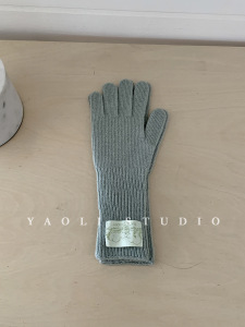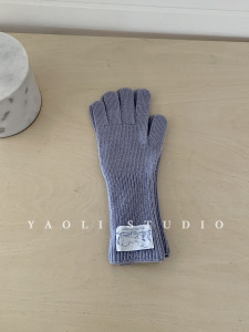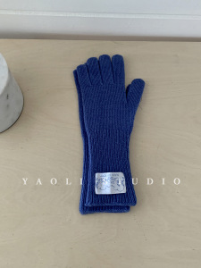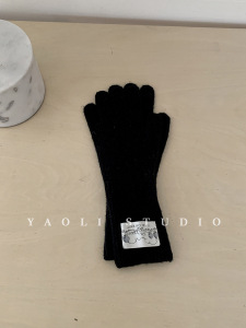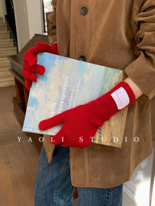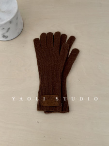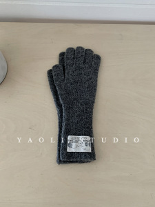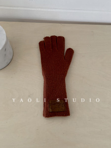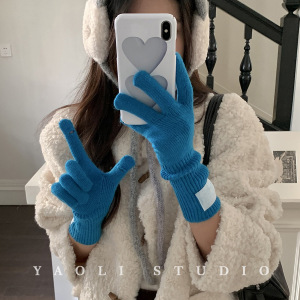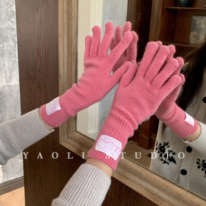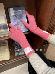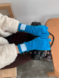 新款韩系含羊毛针织毛线彩标手套女秋冬季保暖露指可触屏骑行防寒