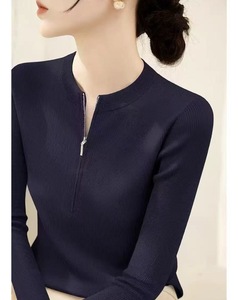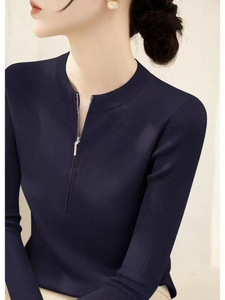 2025年减龄时尚拉链设计上衣女装秋季时尚短袖圆领半开衫针织衫