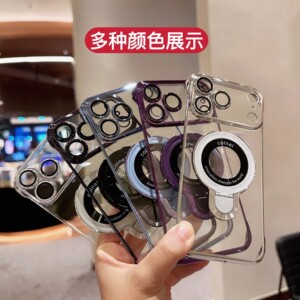 适用iPhone17手机壳电镀无边框磁吸支架苹果17air自带玻璃镜头膜