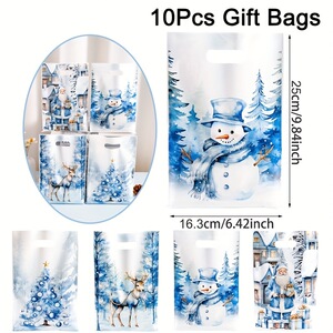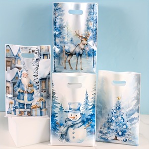 跨境新品卡通圣诞节印花图案手提袋节日派对回礼袋珠光膜糖果包装