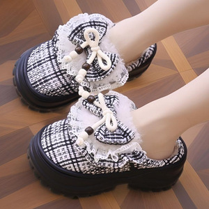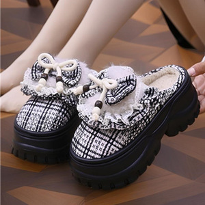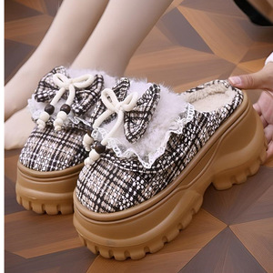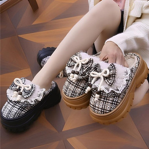 新款厚底蝴蝶结棉拖鞋女生秋冬季舒适保暖百搭软底小香风学生居家
