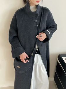 双面羊绒大衣女2025秋冬新款韩版宽松立领简约百搭双面羊毛外套女