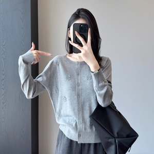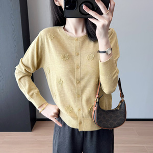 精致氛围感~温柔法式立体蕾丝花朵针织开衫时尚羊毛外套秋G091308