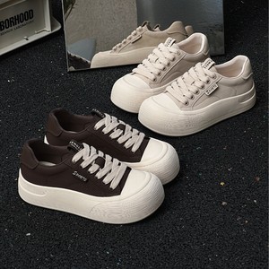 时尚娃娃头休闲鞋女2025年秋冬款加绒轻便学院风百搭系带真皮板鞋