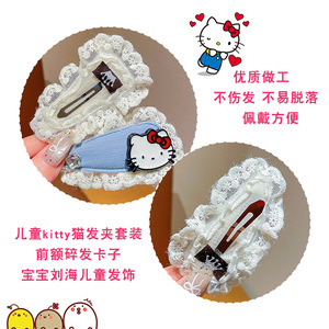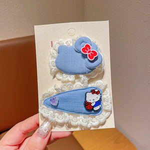 女孩甜美布艺牛仔凯蒂猫发夹蕾丝蝴蝶结BB夹儿童可爱百搭头饰夹子