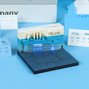 跨境新款3d立体便签泰坦尼克号模型2026年纸雕中英版创意礼品摆件