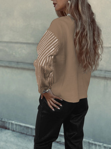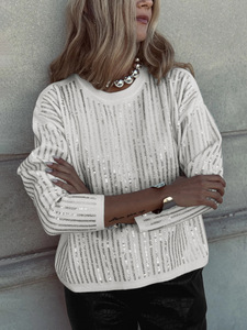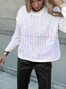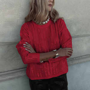 跨境新款辣妹珠片撞色长袖T恤欧美女装高级感小香风亮片气质上衣