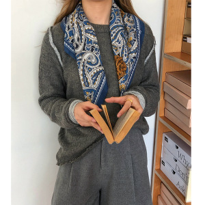 2025新款秋冬蓝色腰果花仿丝毛70cm中方巾秋冬欧美风复古方巾围巾