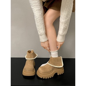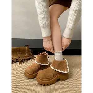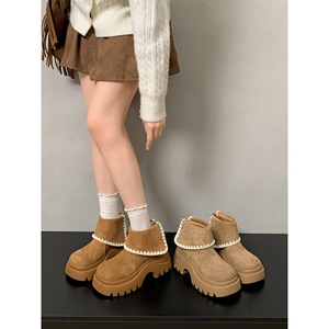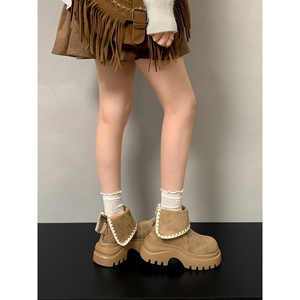 棕色复古粗跟厚底马丁靴女款2025新款小个子增高显瘦美拉德短靴子