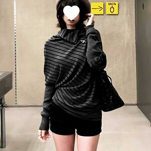 杂毛衣上衣条纹长袖穿搭针织衫女新款早日宽松古蝙蝠袖慵懒风秋季