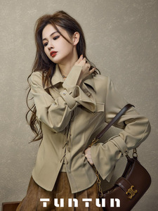 吞吞秋冬【与秋书】飒美出街 精致抽绳系带喇叭袖衬衫