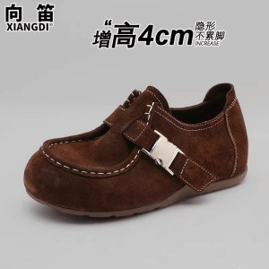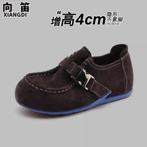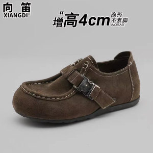 内增高女鞋牛皮版全包勃肯鞋女款袋鼠鞋一脚蹬乐福鞋软底休闲单鞋