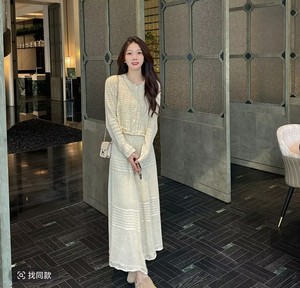 奥法庄园法式温柔风镂空钩花针织开衫半裙套装