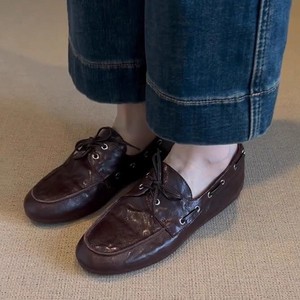 羊皮版~复古圆头系带小皮鞋女2025新款真皮英伦风平底单鞋乐福鞋