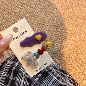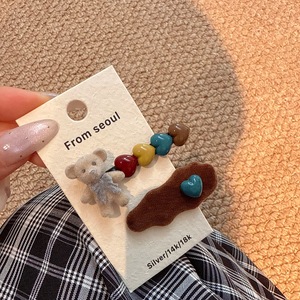 韩国新款植绒小熊爱心侧边对夹甜美少女减龄发夹时尚可爱刘海夹子