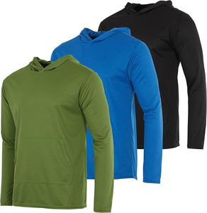 跨境亚马逊春秋男士户外长袖薄款运动套头连帽卫衣带口袋纯色外套