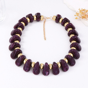 跨境欧美夸张简约时尚休闲百搭几何串珠CCB项链潮流日常通勤项饰