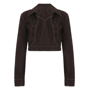 美式个性街头风辣妹时尚短款牛仔外套长袖不规则排扣露脐翻领上衣