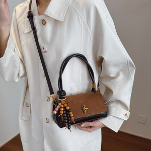高级质感麂皮绒小方包女2025新款时尚复古手提包百搭单肩斜挎小包